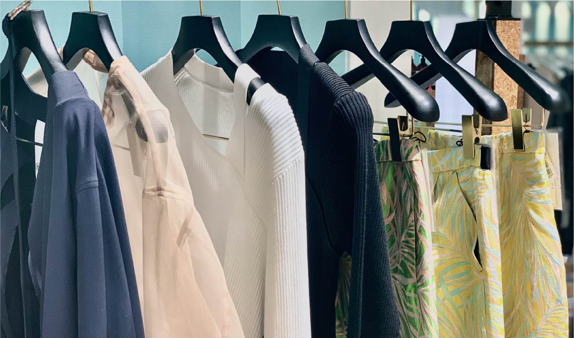 表参道に旗艦店を構える人気レディースブランドA様のOEMを長年担当。細部のニュアンス再現、安定した品質管理、短納期対応など、高感度のファッションブランドが求める基準に応えるものづくりで高く評価いただいています。